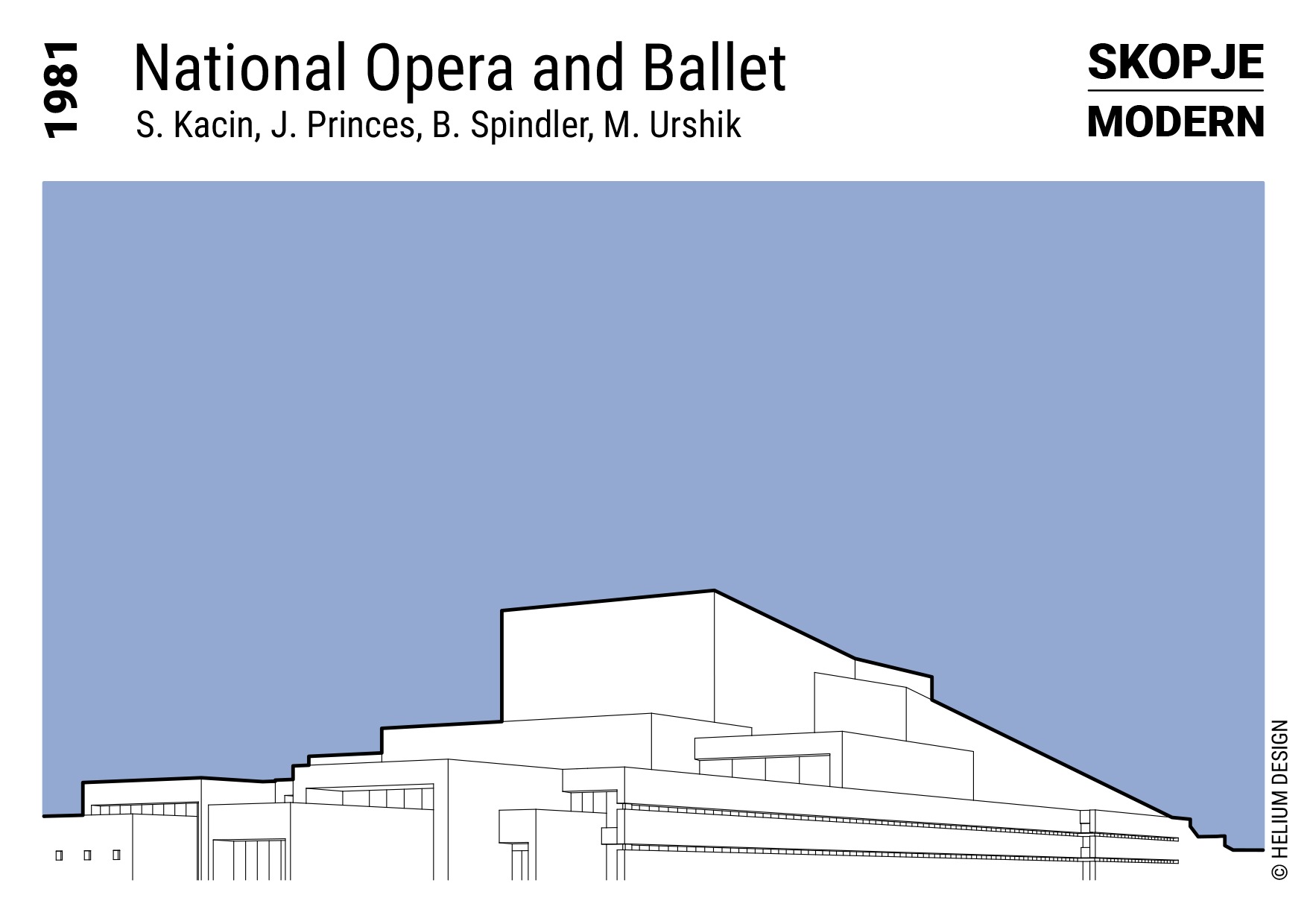 Series of products showing the iconic buildings from the brutalist architecture in Skopje.